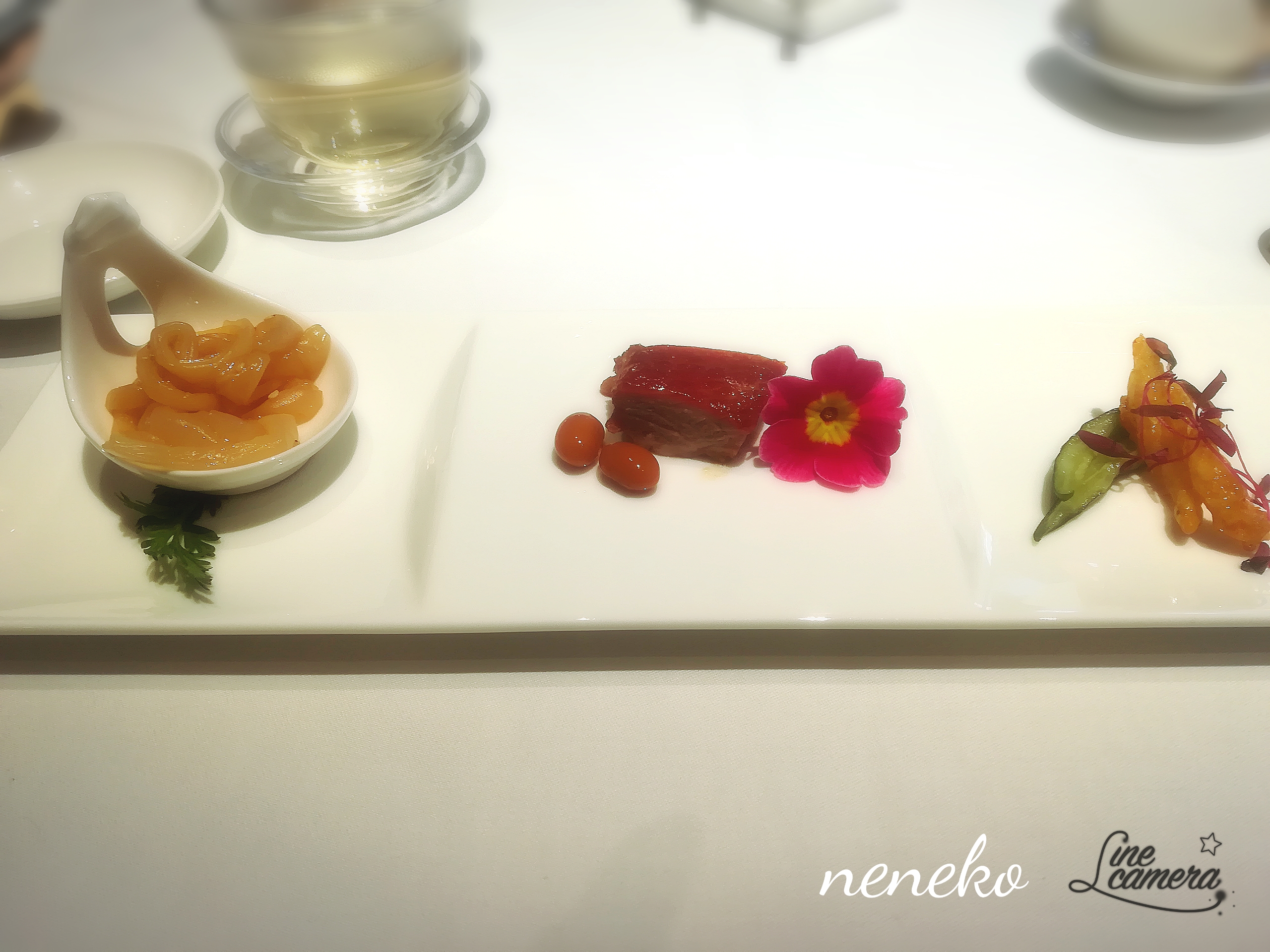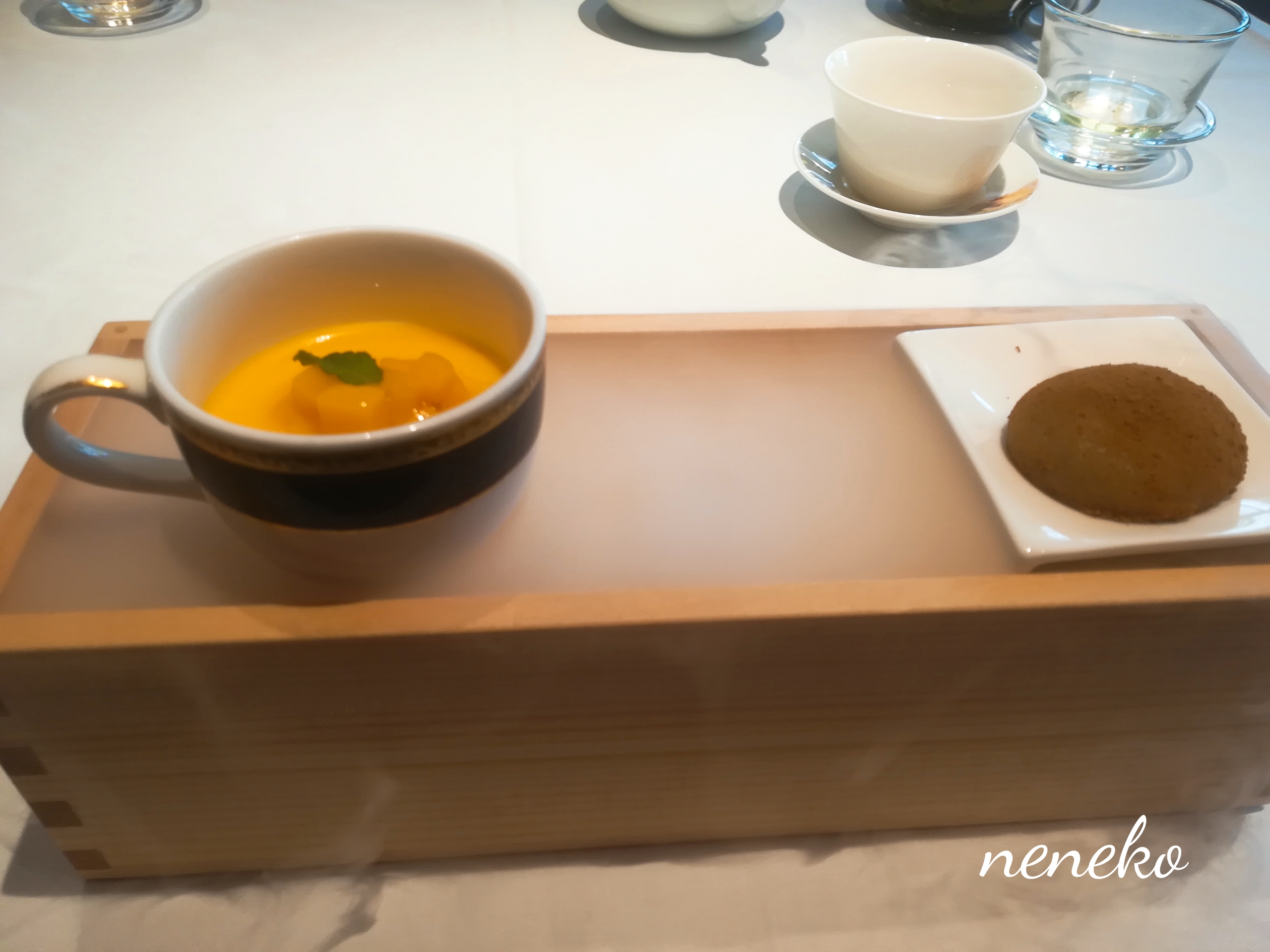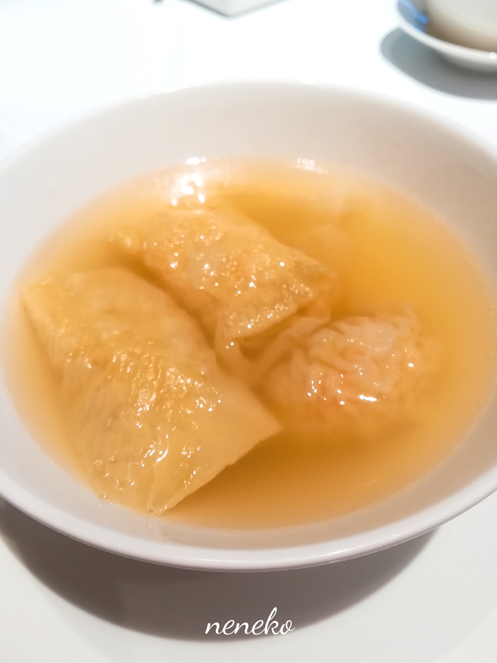 「カラスミ水餃子松茸香る湯葉入り蒸しスープ」 とメニューにはありましたが、あまり松茸は香らなかったような…?というか松茸の説明はなかったから、私たちが食べたときは松茸ナシだったのかしら??でもこのスープ、美味しかったです。