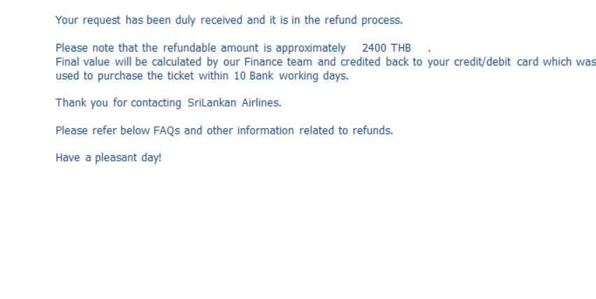 おおおお!やっとキャンセルできた(涙)タイバーツなのはタイ出国のため。8300円ほど戻ってくるのは有難いです。