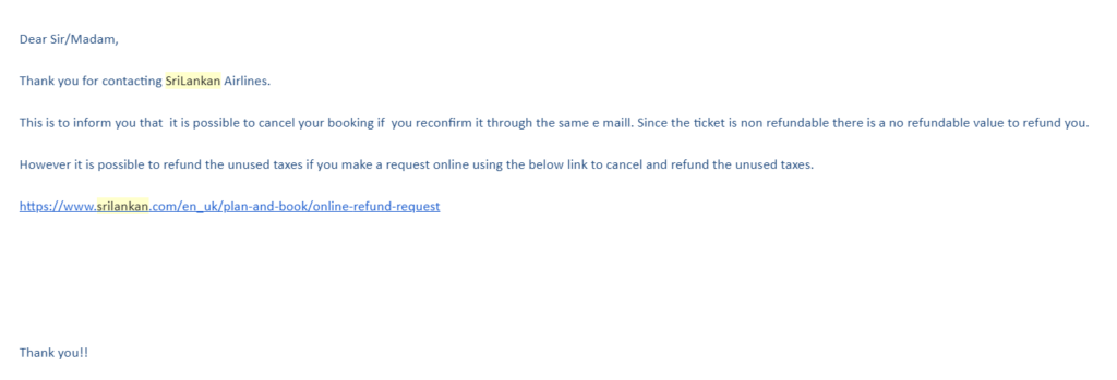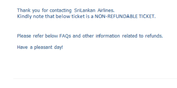 一縷の望みを賭けて、スリランカ航空の問い合わせメールで「カード決済者と搭乗者が違うが、現地でカードの提示は出来ないのでカード決済者を変更したい」とメールしてみました。