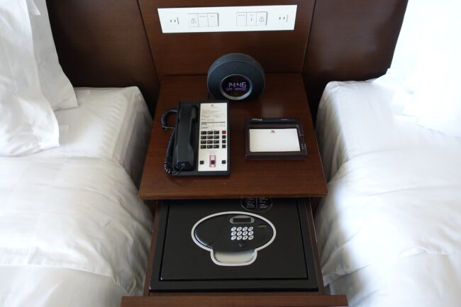 枕元に貴重品ボックスがあるのは、珍しいけどクローゼットにあるよりも安心感があるかも。