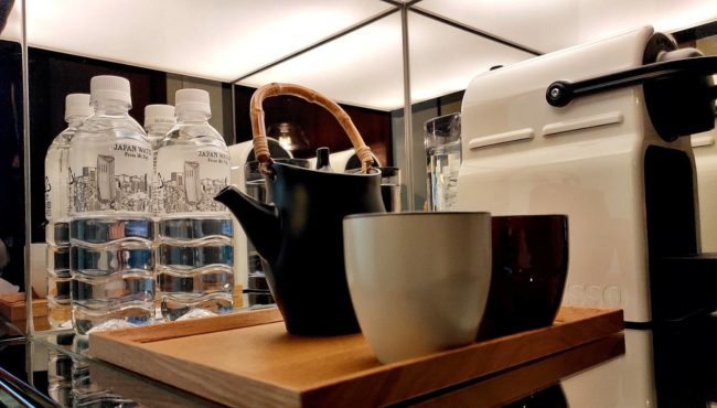 アメニティ類は、左後ろの壁にまとめられています。